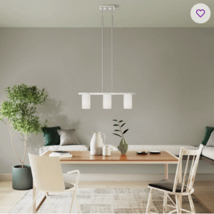 • Three adjustable height pendants for customizable spacing